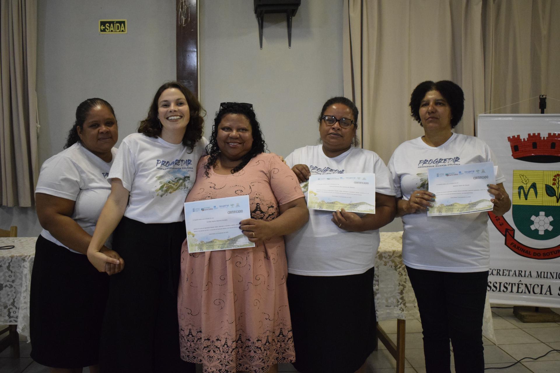 A formanda Jaqueline Pinheiro ressaltou a importância do Progredir Geoparque Quarta Colônia para o compartilhamento de experiências e saberes entre as participantes, além de servir de um espaço privilegiado para o respeito às diferenças e o convívio afetivo. “Quem de nós não voltou à infância ou à adolescência, quando a mãe ou a avó fazia as massas, os molhos e os sabores. Quem de nós não sentiu aquela saudade que acalenta a alma ou lembranças revividas durante os cursos”, lembrou em seu discurso.