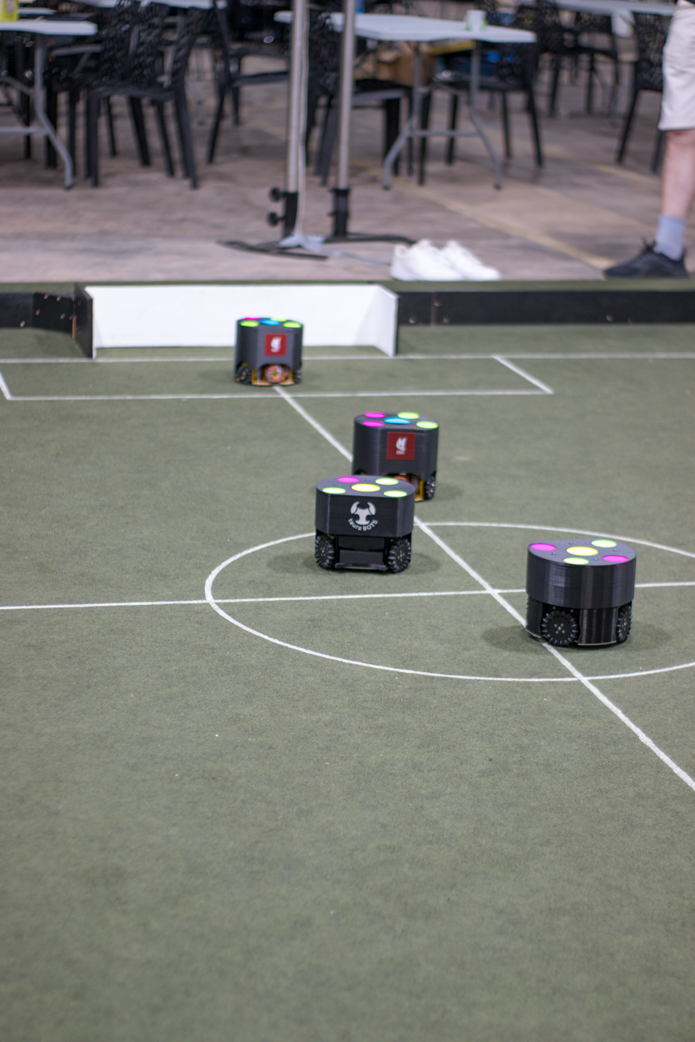 Segundo os integrantes Gabriel Niederauer, René Gargano Ferrari e Maria Rita Piekas, que representaram a equipe na competição, este é um dos principais desafios técnicos: integrar visão computacional, tomada de decisão e controle de movimento, ajustando tudo em tempo real no ambiente da competição. Muitos testes precisaram ser feitos no local para compensar variáveis como escorregamento das rodas, atraso na comunicação entre os robôs e diferenças entre o simulador e o campo real.