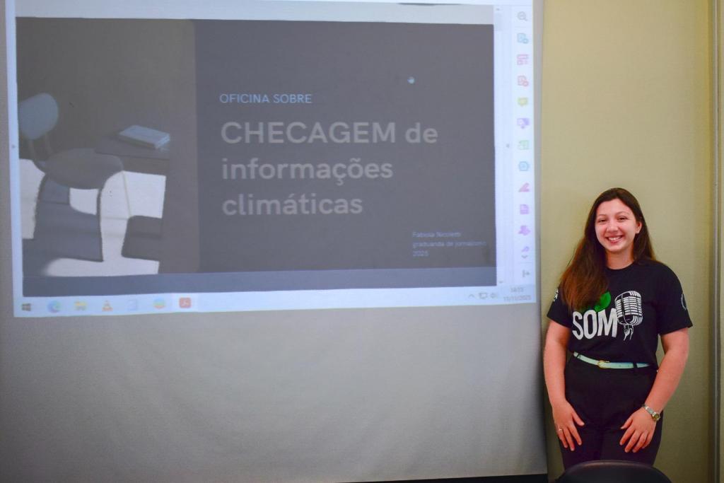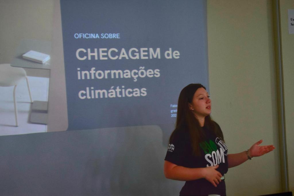 A oficina foi ministrada por Fabiola Nicoletti, acadêmica do 4º semestre do curso de Jornalismo da UFSM e integrante do BioSom. Ela guiou os participantes pelos principais métodos e ferramentas utilizados no fact-checking. A proposta buscou aproximar estudantes e comunidade acadêmica das práticas de checagem aplicadas ao contexto ambiental, um dos campos mais afetados pela circulação de notícias falsas e dados imprecisos.