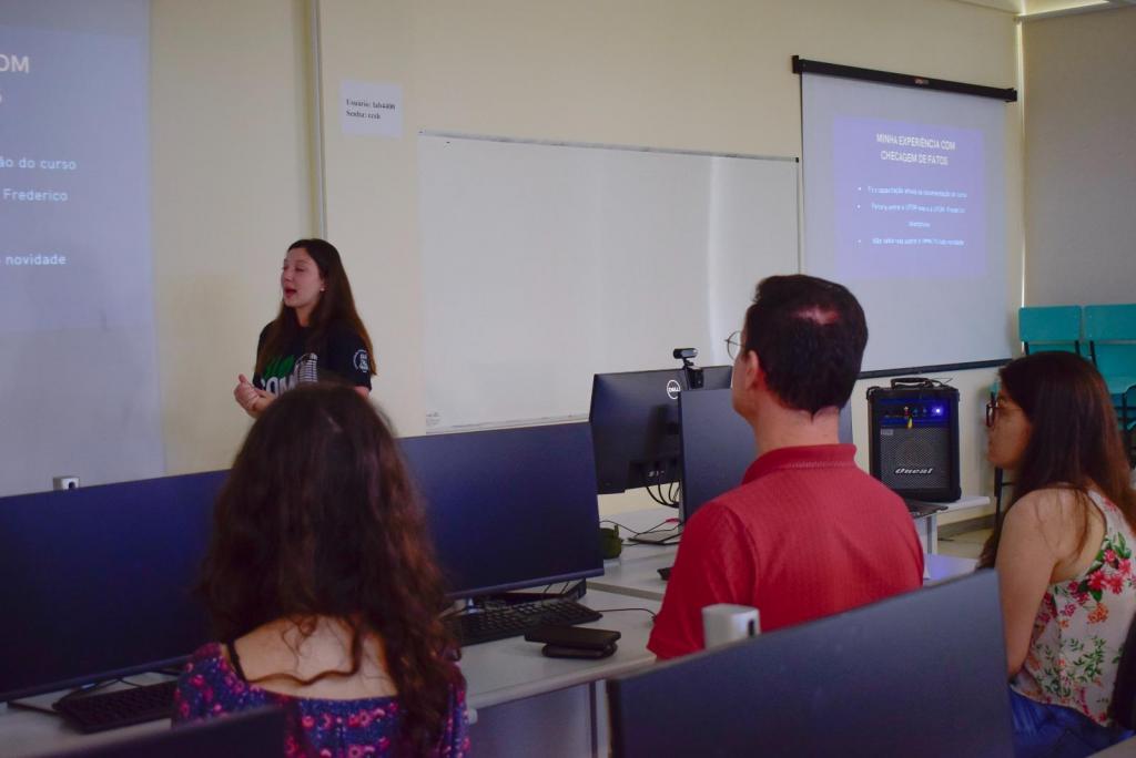Para Fabiola, a experiência teve um significado especial. A acadêmica relata que sua trajetória dentro do BioSom começou justamente a partir de um curso de checagem de fatos, realizado no início do ano. “Foi por meio da checagem que eu entrei no Biosom. Fiz esse curso despretensiosamente e poder, a partir disso, oferecer oficinas, é muito gratificante, porque me possibilita ensinar outras pessoas”, afirma.