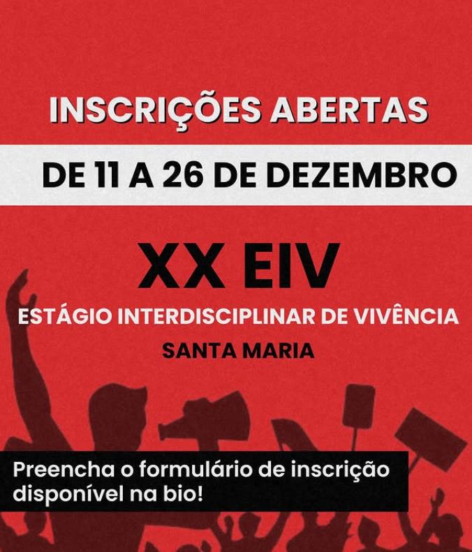 Para mais detalhes sobre o Estágio Interdisciplinar de Vivência (EIV) – Santa Maria, acompanhe as páginas oficiais nas redes sociais: