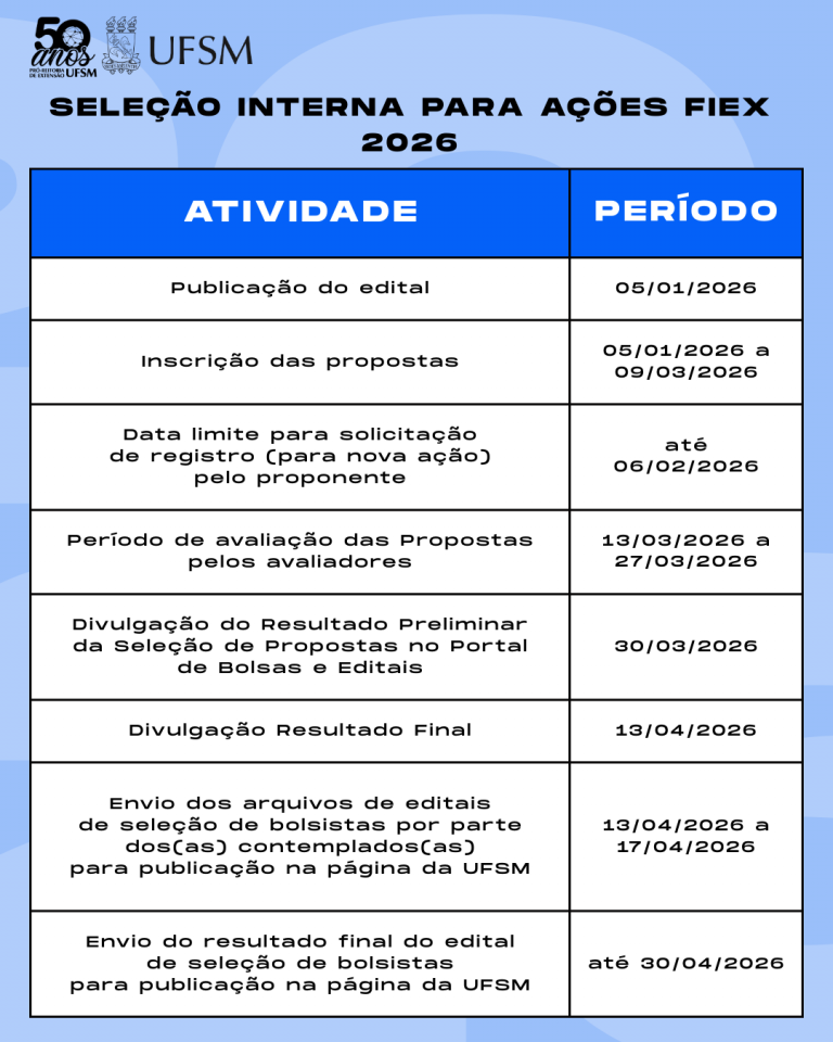 Envio dos arquivos de editais de seleção de bolsistas por parte dos(as) contemplados(as) para publicação na página da UFSM13/04 a 17/04/2026