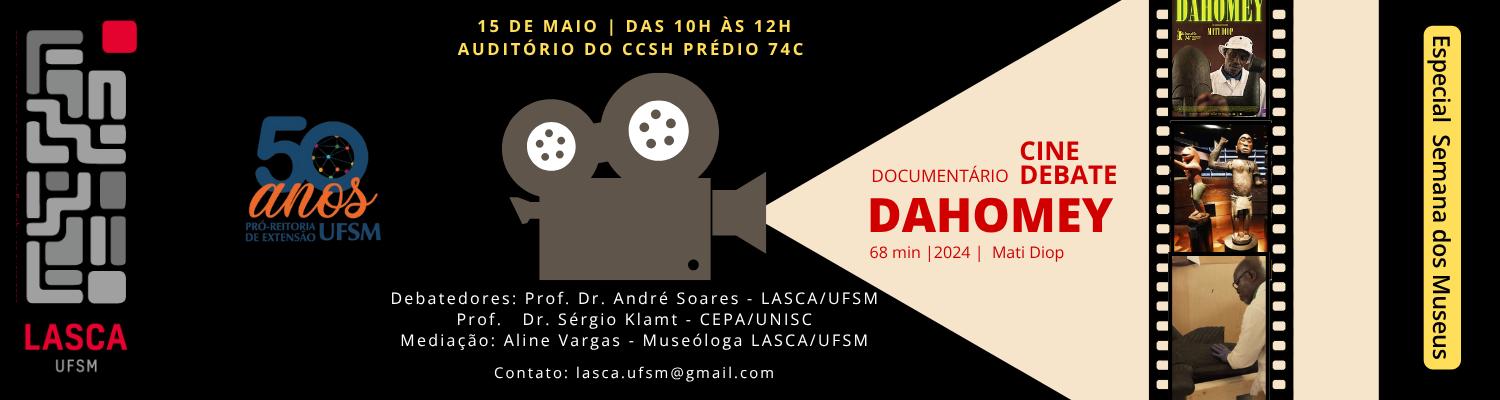 Em comemoração a Semana dos Museus, que ocorre entre os dias 12 e 18 de maio, o LASCA/UFSM realiza a exibição do documentário DAHOMEY e convida a comunidade santamariense a participar das reflexões sobre história, patrimônio e descolonização. Como convidado, o prof. Dr. Sérgio Klamt do Centro de Ensino e Pesquisas Arqueológicas da UNISC se juntará ao Coordenador do LASCA, Prof. Dr. André Soares, para debater alguns aspectos da obra.
