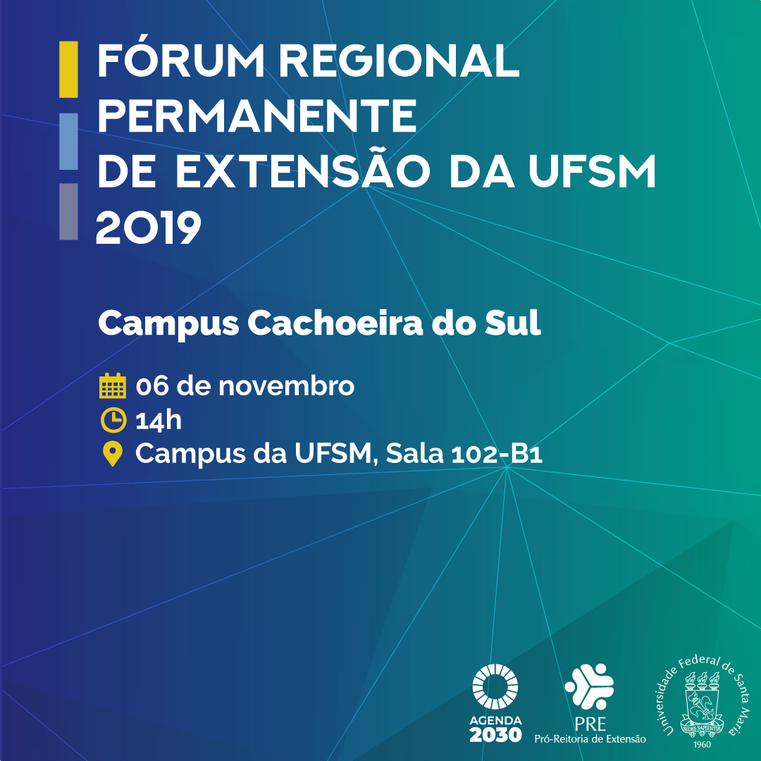 A Pró-Reitoria de Extensão (PRE), com o objetivo de coletar e atender as demandas das comunidades nas quais está inserida, realiza a segunda edição de 2019 do Fórum Regional Permanente de Extensão. O evento é aberto a toda comunidade regional das cidades-sede da UFSM.