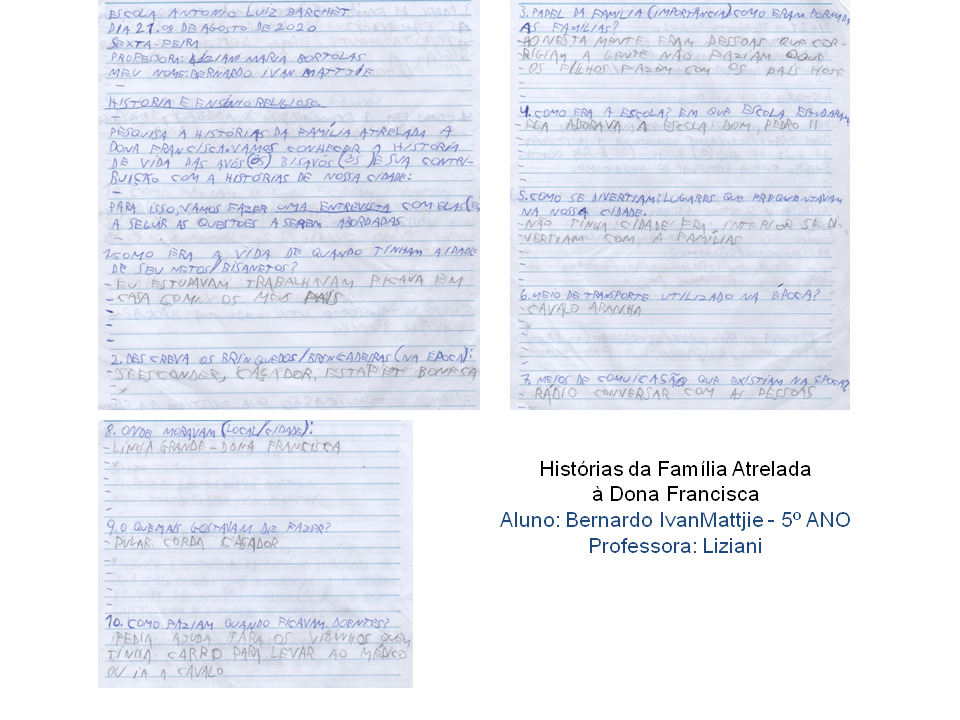 Os alunos desenvolveram atividades remotas relacionadas ao Projeto Geoparque, professores gravaram vídeos dos pontos turísticos de Dona Francisca, alunos fizeram desenhos, maquetes e modelagens. Além disso, algumas famílias compartilharam receitas antigas de família, bem como fotos de objetos e outros descobriram brincadeiras que seus avós inventavam com o objetivo de ensinar às crianças sobre o patrimônio local.