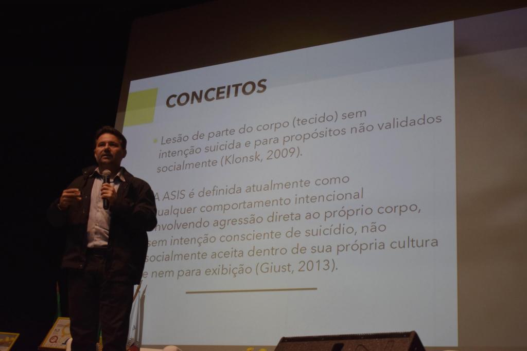 O curso “Auto-lesão sem intenção suicida” teve carga horária de 8 horas e, segundo Carlos, quem ministrou o exercício, uma das primeiras coisas que precisa ser explicada é a diferença conceitual entre a auto-mutilação e o fenômeno que ele chama de Auto-lesão Sem Intenção Suicida (ASIS). O psicólogo afirma quando falamos auto-mutilação esse conceito é mais amplo, podendo ser incluído até uma tentativa de suicídio ou atos com intenção de morte, mas seu objeto de fala, percebido principalmente da pré-adolescência até o adulto jovem, é referente a casos de cortes no corpo, que tem aumentado bastante no Brasil inteiro. “Se a pessoa recorre a esse comportamento, seu objetivo não é tirar a própria vida, são outros”, diz ele. A principal motivação é o alívio de uma angústia que não consegue aguentar, que a faz preferir causar dor física para poder aliviar a dor emocional, algo complexo de entendimento que está no discurso que eles alegam.