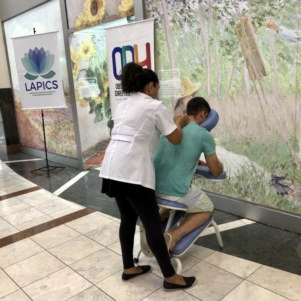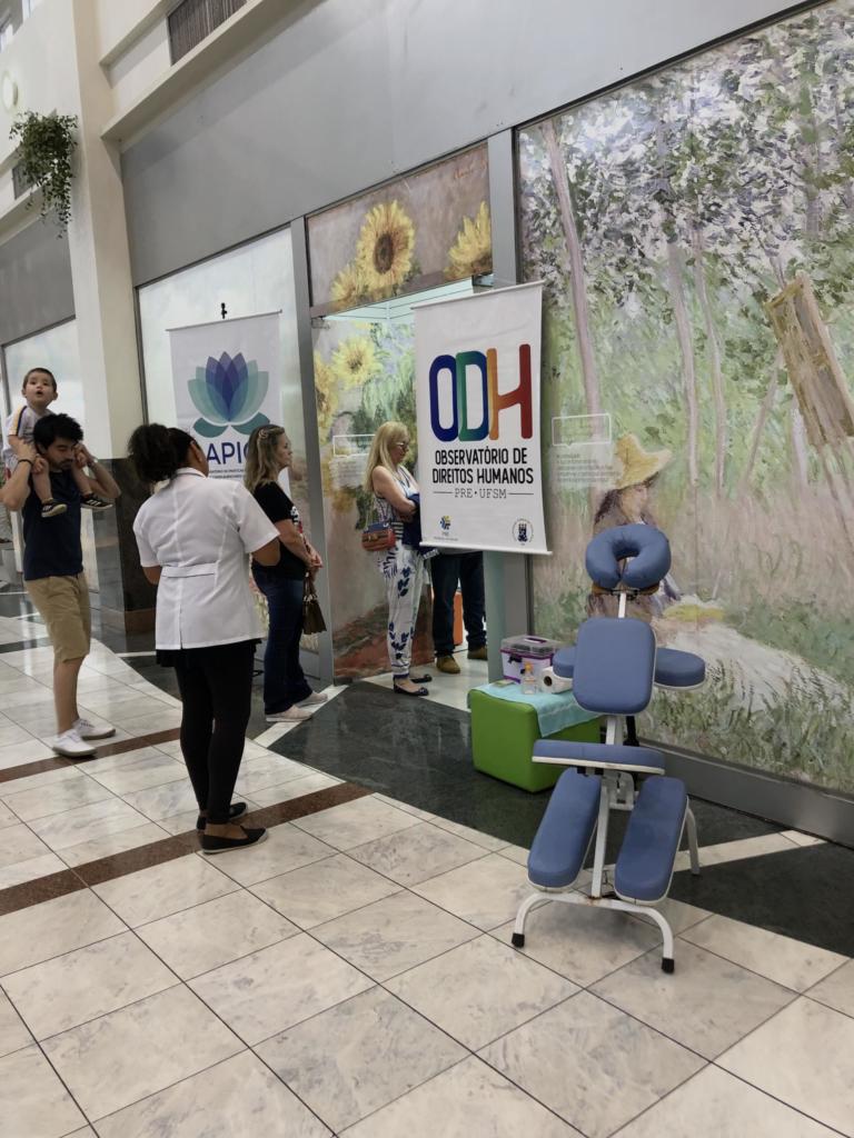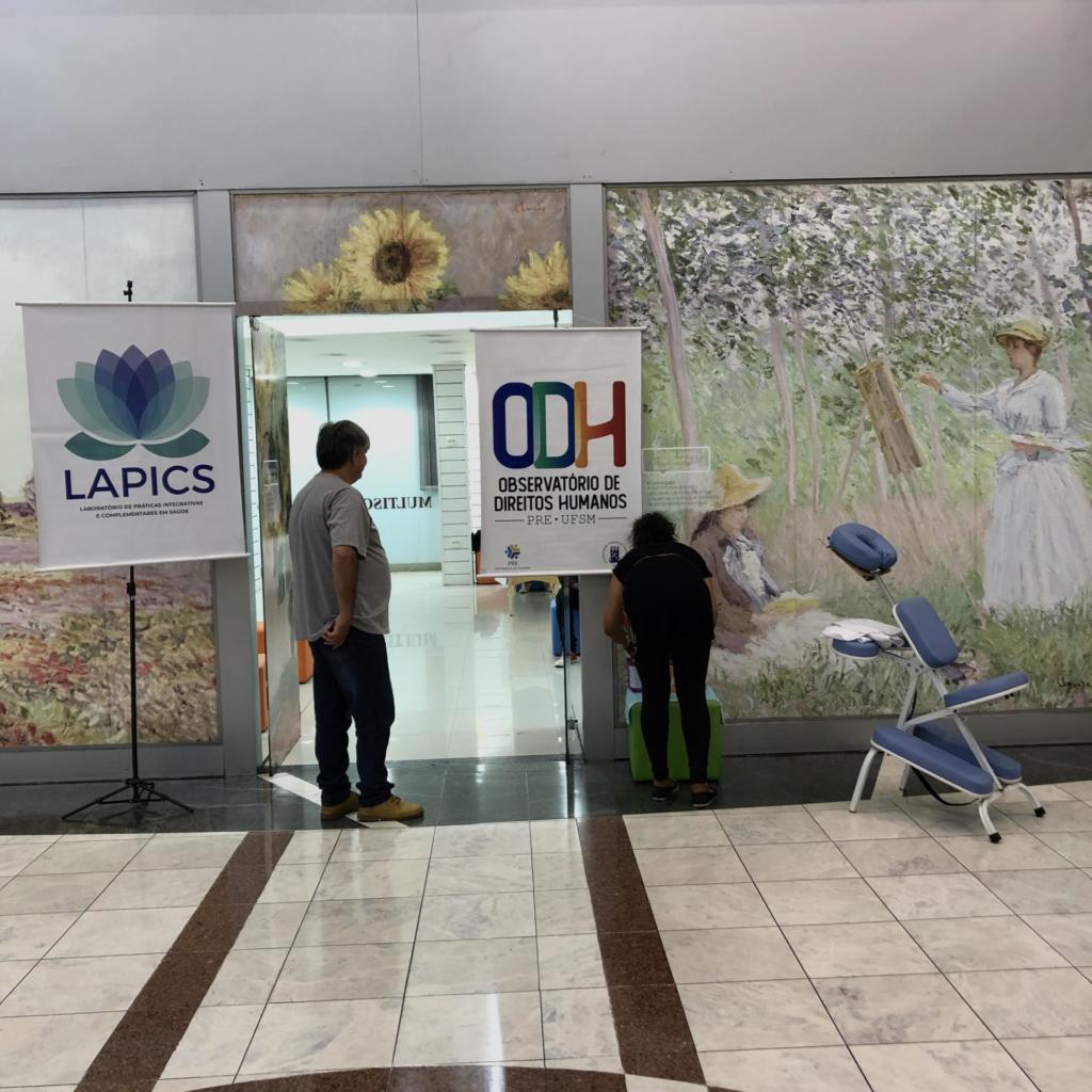 Na tarde da terça-feira, 12 de novembro, uma roda de conversa com a professora graduada em Educação Física e Desportos e advogada inscrita na Ordem dos Advogados do Brasil (OAB), Renata Quartiero, e Thomás, homem trans e estudante da Pós-Graduação na UFSM. Iniciando às 14:00, ambos fizeram suas falas sobre o tema “Luta LGBT em Santa Maria“. Algumas horas depois, às 18:00h, iniciou-se no Shopping Monet uma Ação do Laboratório de Práticas Integrativas e Complementares em Saúde (LAPICS). O projeto do Centro de Ciências da Saúde (CCS) ofereceu gratuitamente massagem, reiki, barras de acess e auriculoterapia às pessoas que por lá passavam.