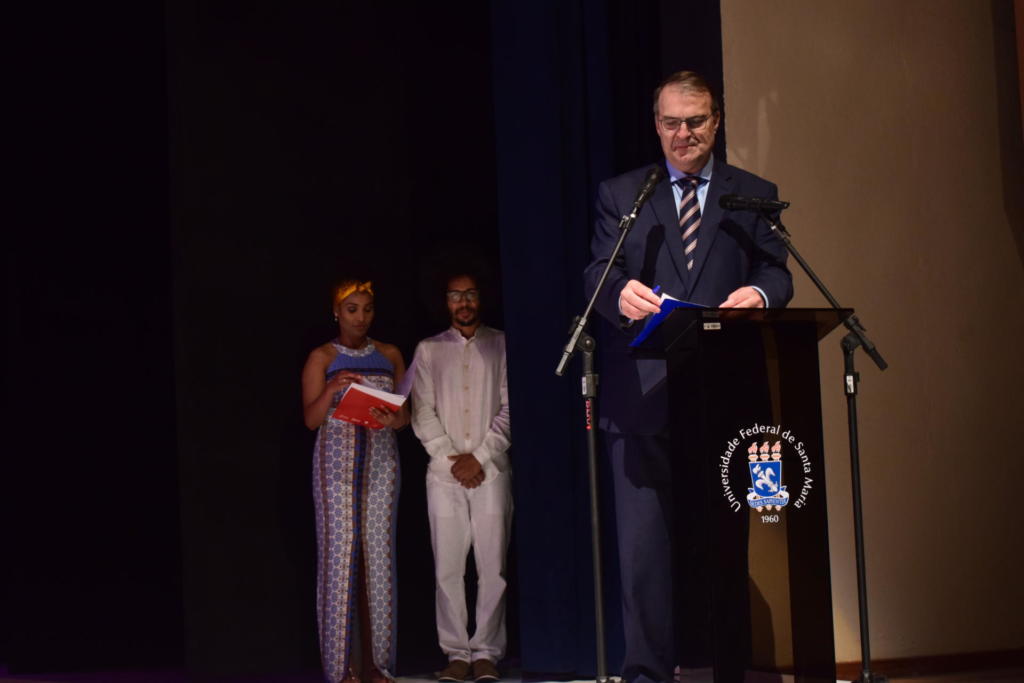 Além da entrega, os presentes puderam prestigiar a apresentação do espetáculo “Vozes Negras“, promovido pela Banda Sinfônica, com a regência de Dilber Alonso e Luiz Antônio Silva, e coordenação de Tita Sartor. As vozes das cantora Arianne TeLima, Ediana Larruscain ecoaram junto com a Escola de Samba Vila Brasil no palco do Centro de Convenções da UFSM, o repertório foi composto por musicais norte-americanos, black music, música popular brasileira e sambas-enredos que marcaram época.