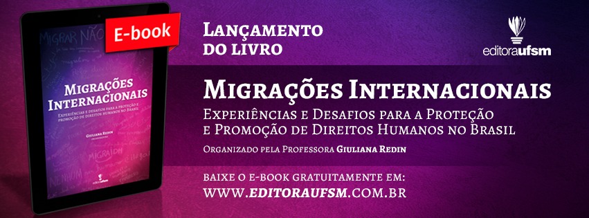 O Migraidh, Grupo de Pesquisa, Ensino e Extensão Direitos Humanos e Mobilidade Humana Internacional da UFSM, lançou, no último dia 28 de julho, o e-book “Migrações Internacionais: experiências e desafios para a proteção e promoção de direitos humanos no Brasil”. A obra, lançada e disponibilizada gratuitamente pela Editora UFSM, é composta por 11 capítulos, divididos em duas partes, e apresenta um debate ético, interdisciplinar e crítico sobre a realidade das migrações e do refúgio.
