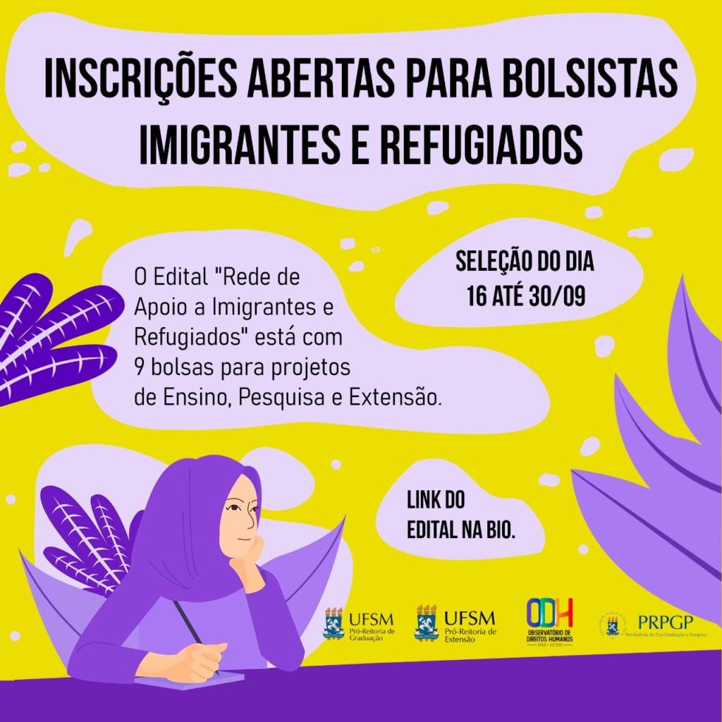 O bolsista deverá estar regularmente matriculado e frequentando, na UFSM, um curso de graduação (licenciatura, bacharelado ou curso superior de tecnologia) e ter seu ingresso originário pelo Programa de Ingresso de Refugiados e Imigrantes em Situação de Vulnerabilidade da UFSM.