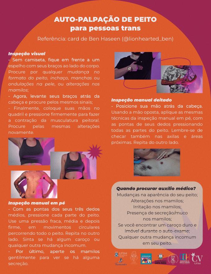 É levando em conta a experiência de homens trans e pessoas trans masculinas, anualmente excluídas de campanhas de combate ao câncer de mama e de colo de útero, que a Liga Acadêmica de Saúde da Mulher (LiASM), da Universidade Federal de Santa Maria (UFSM), desenvolveu a campanha Outubro+. A ação, realizada em parceria com a Casa Verônica UFSM, o Ambulatório Municipal Transcender e a Política de Equidade em Saúde de Santa Maria, busca a representação de pessoas trans no cuidado em saúde.