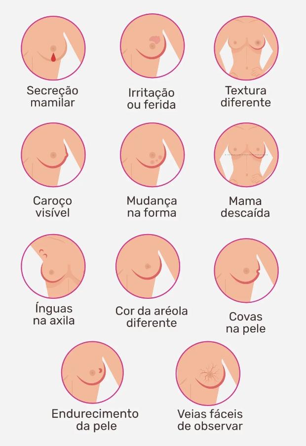 De acordo com o material disponibilizado pela LiASM, o câncer de mama é a “multiplicação de forma desordenada de células anormais da mama, que forma um tumor com potencial de invadir outros órgãos”. Seus principais sintomas são: