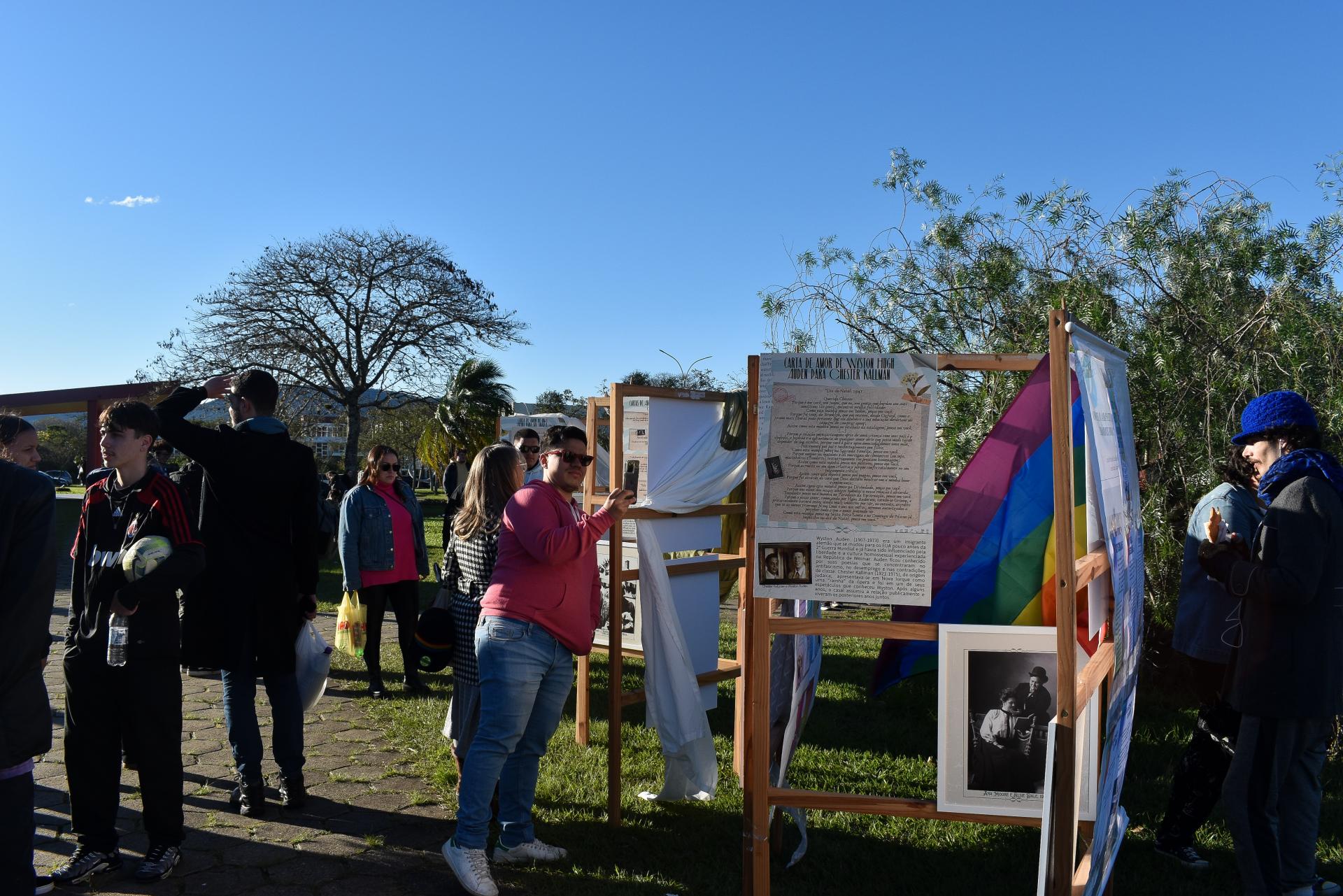 Outro projeto apresentado pelo departamento foi organizado pelo Diretório Acadêmico da História (Daquipalm), que levou ao público o mural “Direitos LGBT ao longo da história”. Conforme a representante Rosa Maria Bernardoni, a iniciativa é ser um informativo resumido sobre os direitos das pessoas LGBTQIAPN+ desde a antiguidade até os dias de hoje. O mural ainda traz personalidades da comunidade que fizeram história ao longo dos anos.