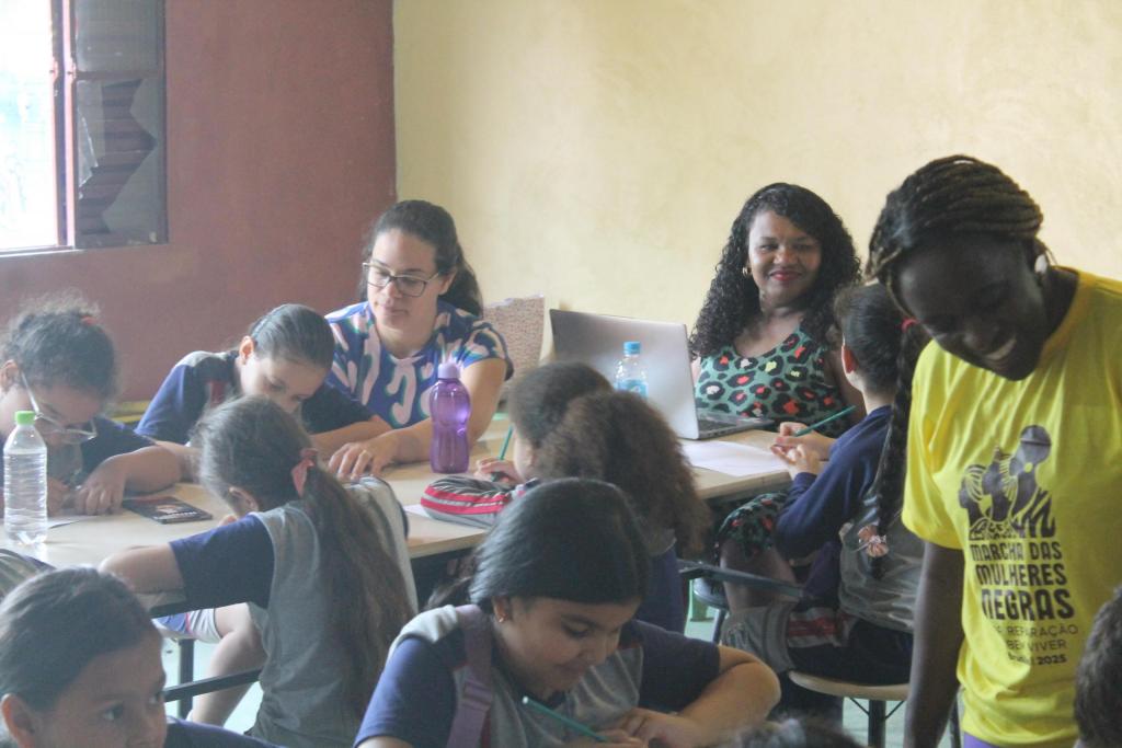 Jacilene Aguiar, coordenadora de projetos do NEABI, relata que a ideia nasceu de uma experiência realizada no COPENE Sul 2025, no espaço ERÊ, onde as crianças puderam ter oficinas, espaços e momentos de educação afro-referenciadas. A partir da experiência exitosa e da referência de outros projetos semelhantes, como o projeto político-pedagógico “Kilombinho de Verão” realizado pela Associação Mães Pretas, foi planejado o compartilhamento de saberes e vivências entre as crianças da educação formal e educação popular – entre a escola EMEF Renato Nocchi e a Escola da Vila Resistência.