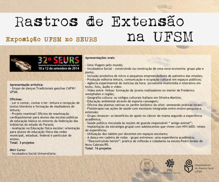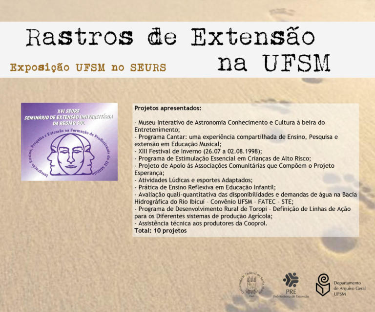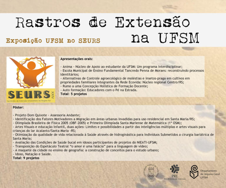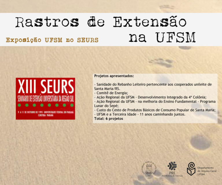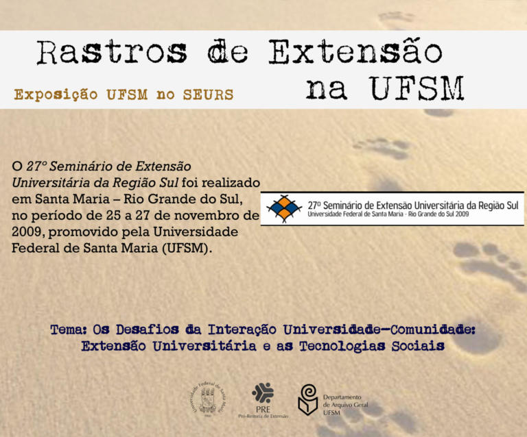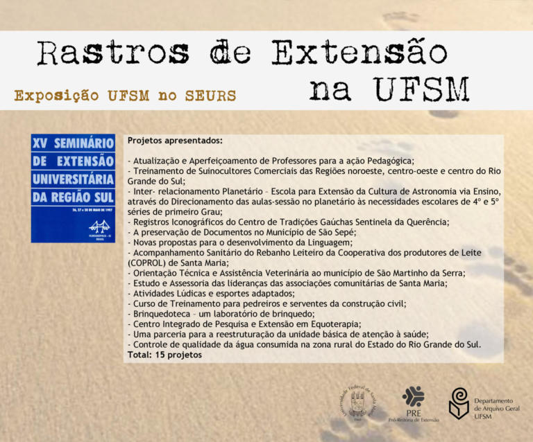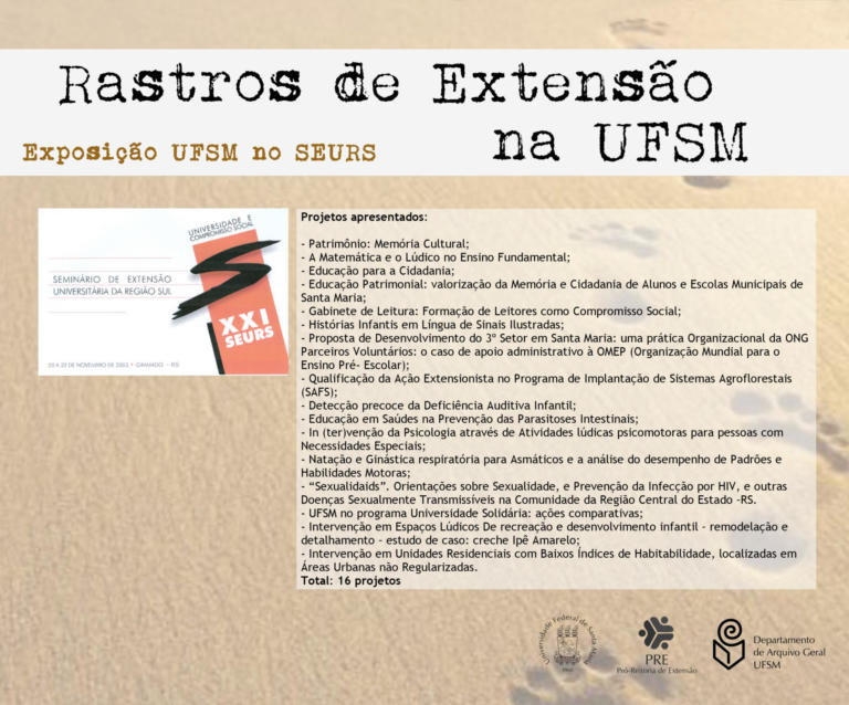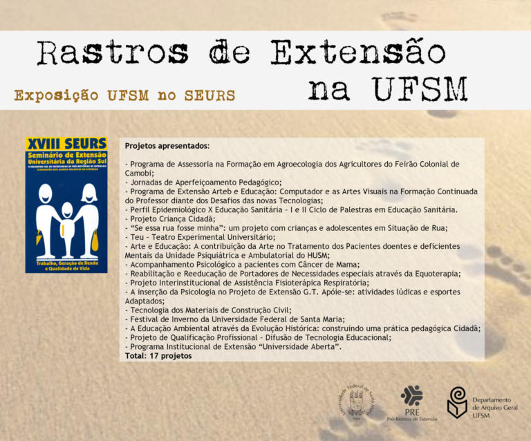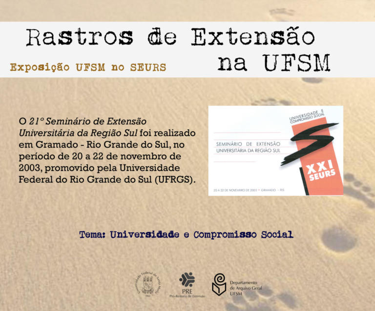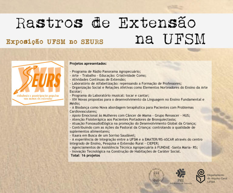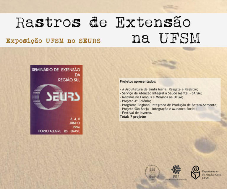 A exposição UFSM no Seminário de Extensão Universitária da Região Sul (SEURS) resgata os projetos de extensão da Universidade Federal de Santa Maria que foram apresentados neste evento de âmbito regional.