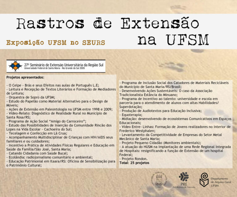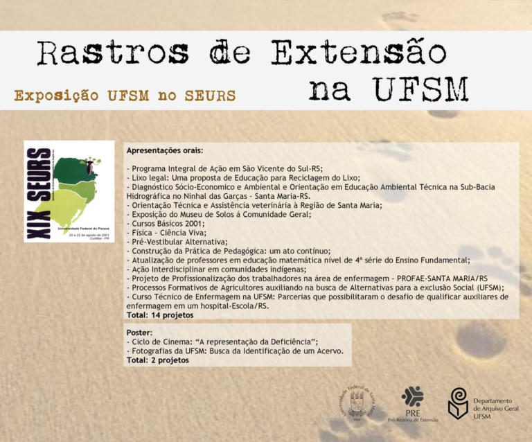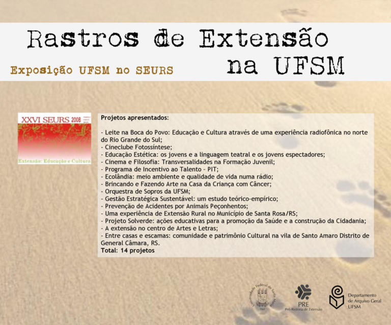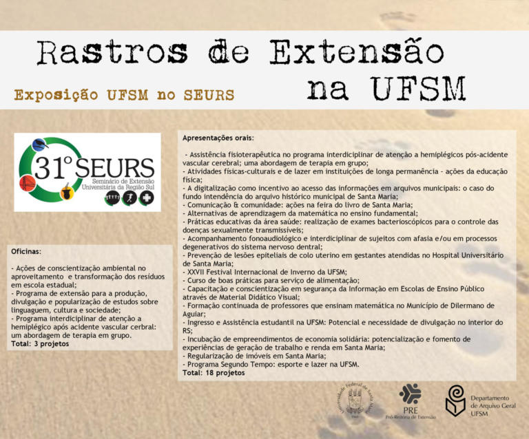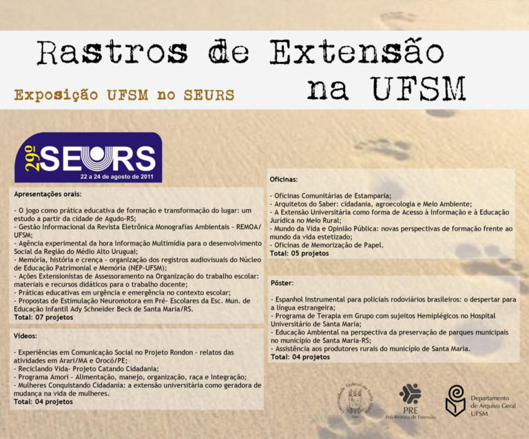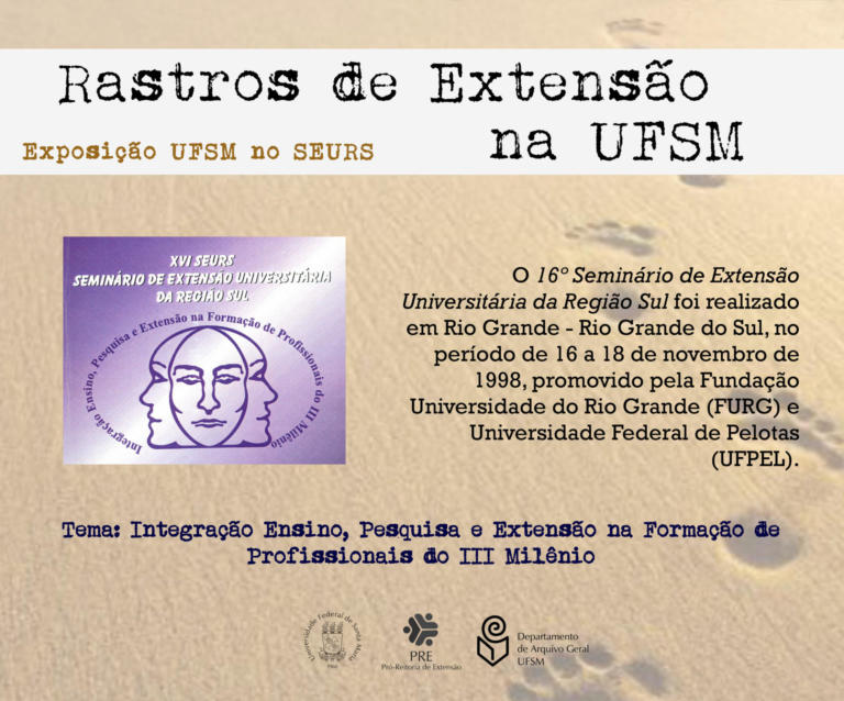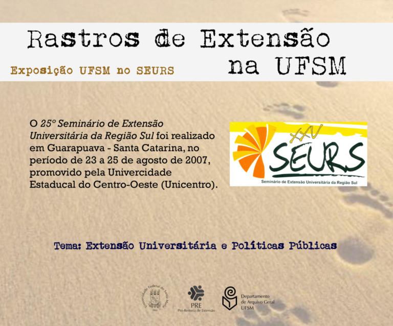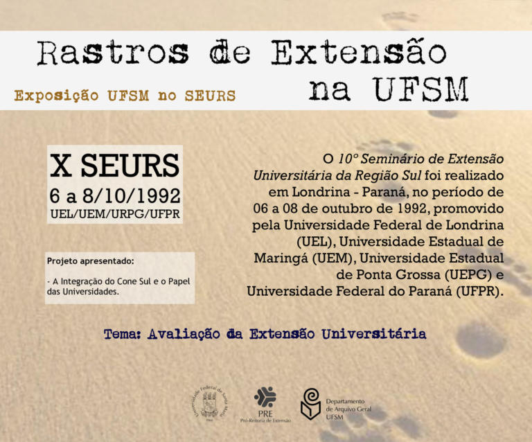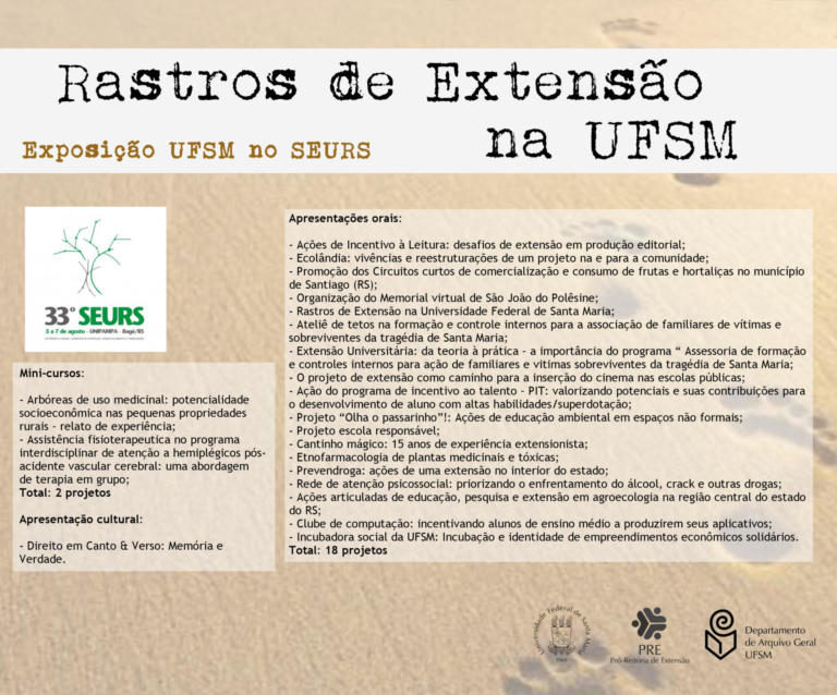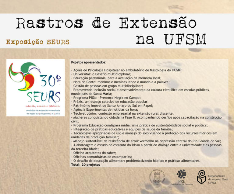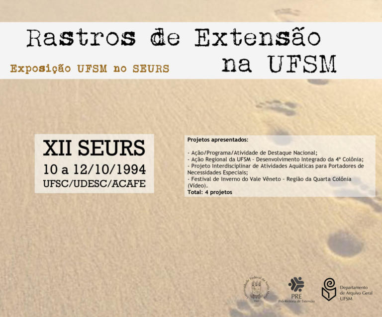 A exposição UFSM no Seminário de Extensão Universitária da Região Sul (SEURS) resgata os projetos de extensão da Universidade Federal de Santa Maria que foram apresentados neste evento de âmbito regional.