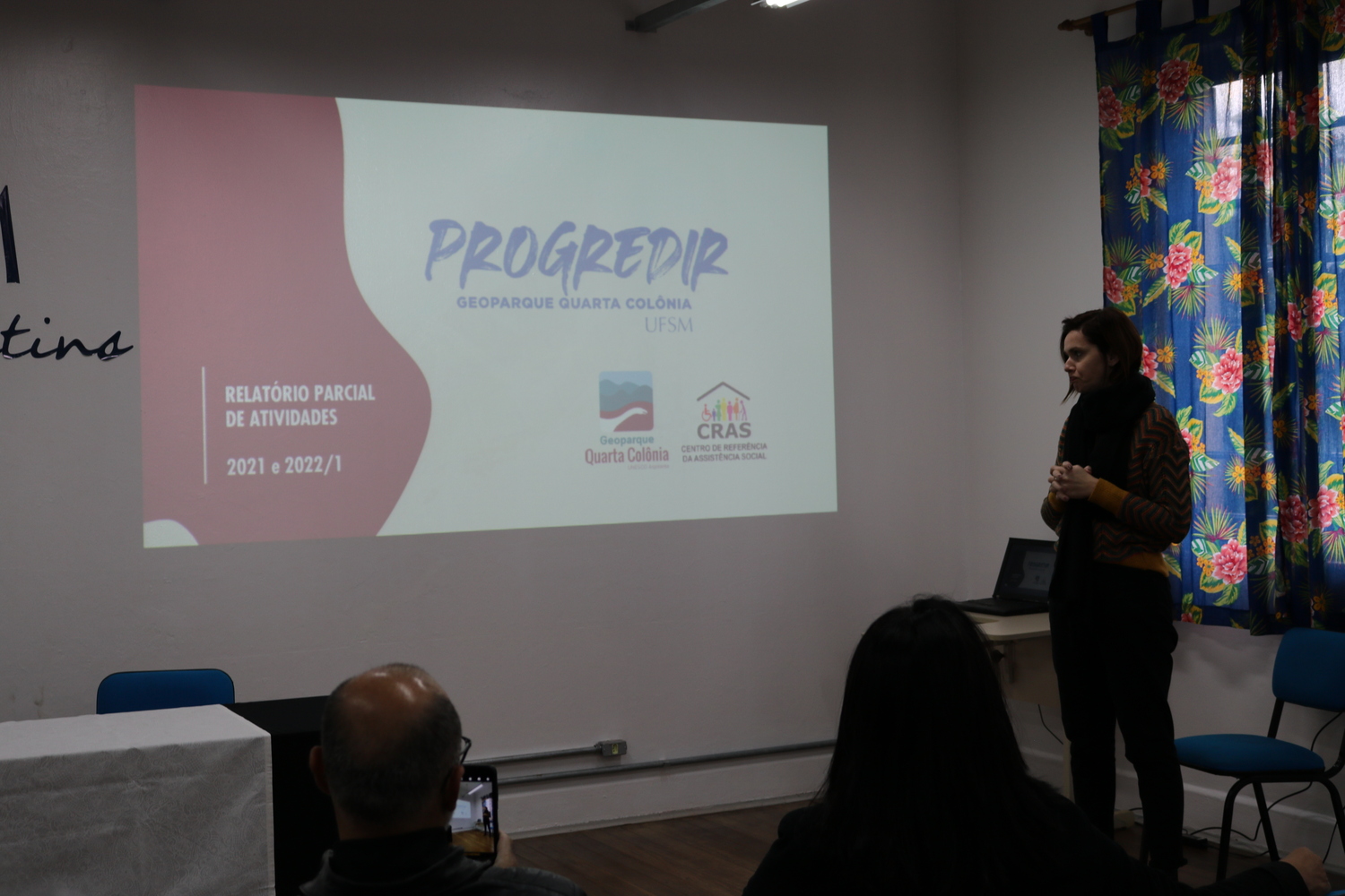 No último domingo (dia 17), Anieth Patrício Matos, da Secretaria Nacional de Inclusão Social e Produtiva do Ministério da Cidadania, técnica responsável pelo Termo de Execução Descentralizada do projeto Progredir Geoparque Quarta Colônia, esteve na UFSM Silveira Martins visitando a Cozinha Escola. A visita teve como finalidade supervisionar as atividades que estão sendo desenvolvidas no espaço.