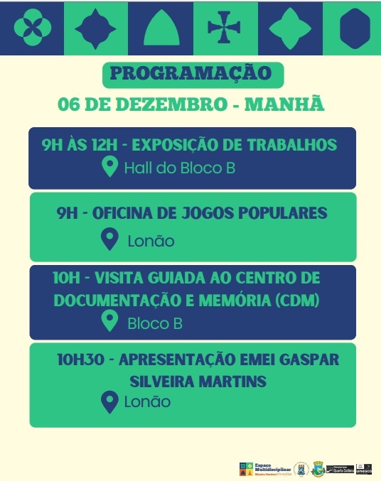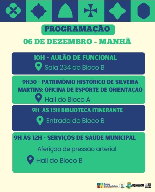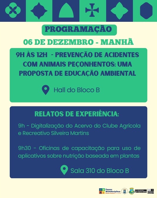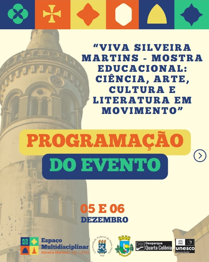 Nos dias 05 e 06 de dezembro, acontece o “Viva Silveira Martins – Mostra educacional: Ciência, arte, cultura e literatura em movimento”, com oficinas, exposições, relatos de experiências, atividades culturais, saúde e muito mais.