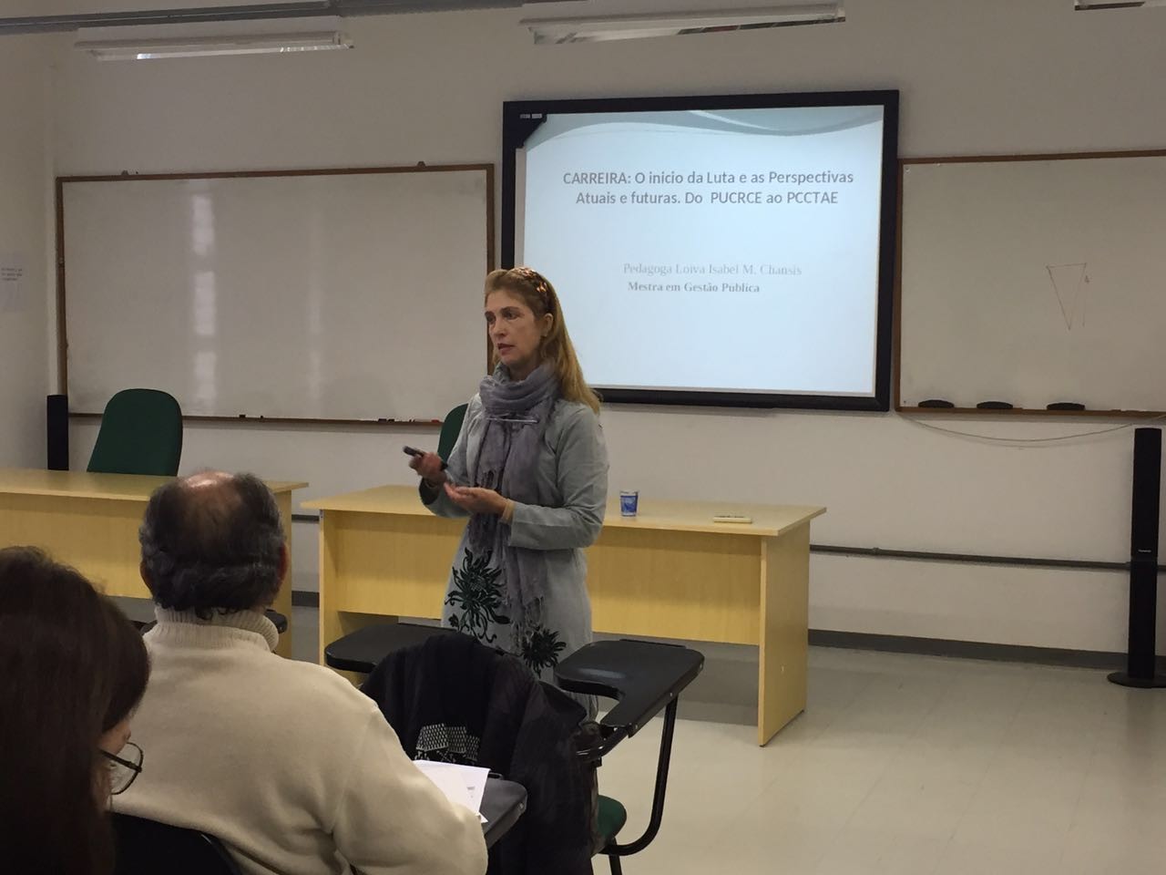 Foram abordados os seguintes temas: Histórico sobre a carreira dos TAEs, Incentivo à Qualificação, Progressão por CapacitaçãoProgressão por Mérito, Programa de Avaliação de Desempenho, Comissão Interna de Supervisão e Desafios e perspectivas sobre a carreira dos TAEs.