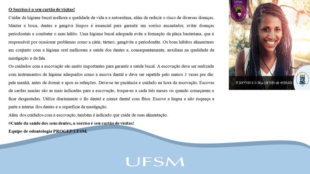 Dicas de saúde e higiene bucal com a servidora da Pró-Reitoria de Assuntos Estudantis, odontóloga Márcia Martins Galetto