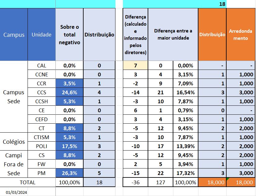Os resultados da distribuição abaixo foram utilizadas para a distribuição das vagas na segunda distribuição, conforme aba da Planilha de distribuição vagas assistente adm. A terceira distribuição foi realizada com base nas vagas não preenchidas na segunda distribuição.
