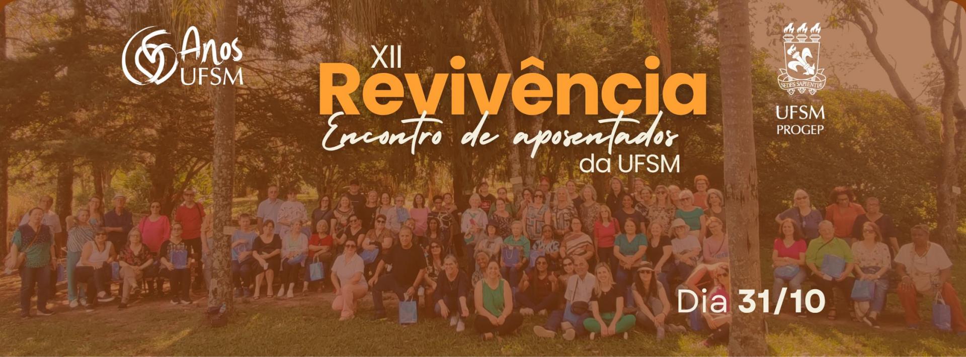 Buscando promover a integração e a valorização dos(as) servidores(as) aposentados(as), a Pró-Reitoria de Gestão de Pessoas da Universidade Federal de Santa Maria promove, anualmente, o Revivência – encontro de aposentados da UFSM.