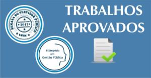 - Os trabalhos a serem submetidos na Semana do Servidor Público 2017 e II Simpósio em Gestão Pública poderão resultar de teses/dissertações, pesquisas acadêmicas, divulgação de propostas e práticas gerenciais, estudos de caso e relatos de experiências.