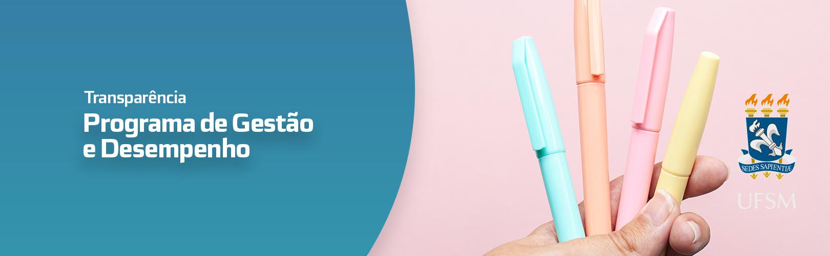 Transparência Programa de Gestão e Desempenho. Mão segurando marca-textos de várias cores