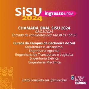 A Primeira Chamada Oral da Lista de Espera do SiSU termina no dia 2 de março, sábado, à tarde, com as Chamadas para os cursos sediados no Campus da UFSM de Cachoeira Sul.