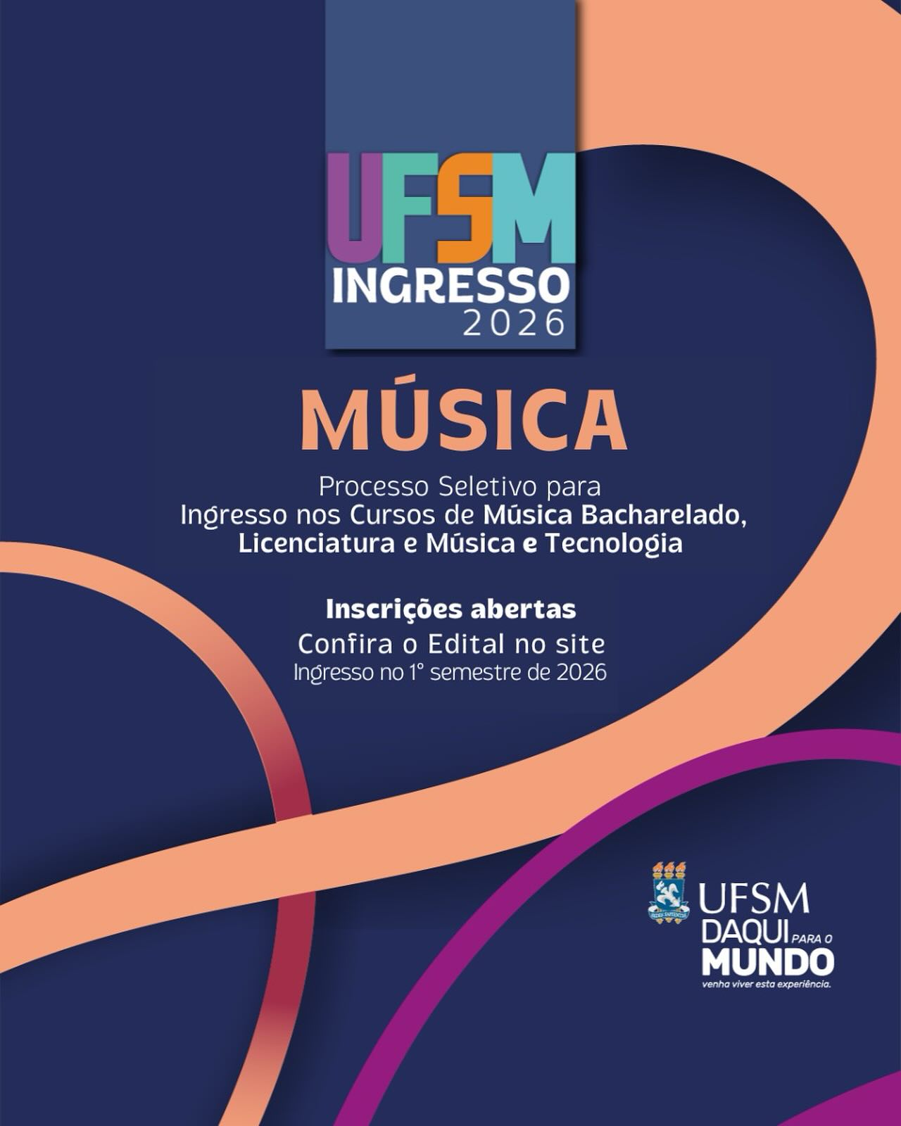 A Universidade Federal de Santa Maria está com inscrições abertas para o Processo Seletivo Música UFSM 2026. São ofertadas 42 vagas, distribuídas em três cursos de graduação presencial: