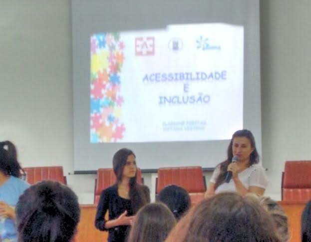 Na quinta-feira, dia 07 de abril, as Educadoras Especiais Clariane do Nascimento de Freitas e Natana Pozzer Vestena participaram da aula inaugural do Curso de Fisioterapia proferindo a Palestra “Acessibilidade e inclusão”. Estavam presentes discentes e docentes do curso. Foi um momento bastante rico onde as palestrantes conversaram com a plateia destacando, em especial, a Acessibilidade atitudinal.