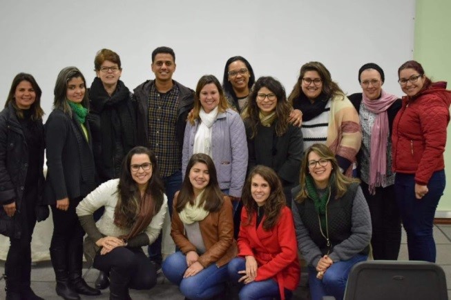 Descrição da imagem: fotografia horizontal e colorida de quatorze pessoas em um ambiente interno.