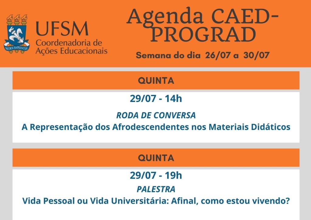 A semana está quase terminando e você já está se planejando para os eventos da semana que vem? Então, confira a agenda da CAED-PROGRAD e participe!