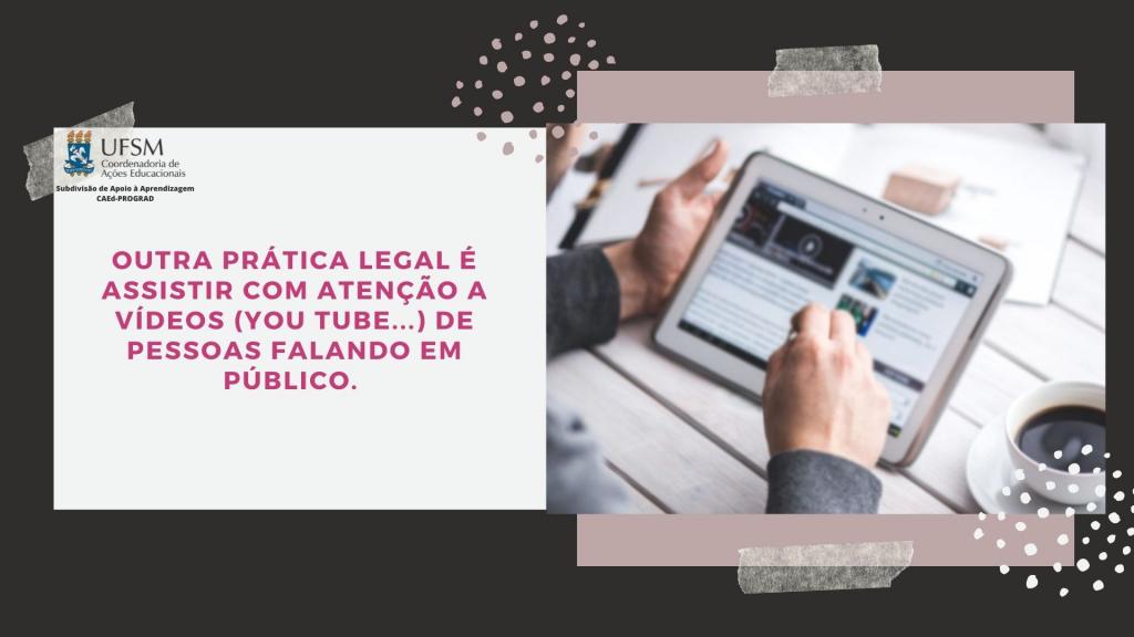 Legenda: Outra prática legal é assistir com atenção a vídeos (You Tube…) de pessoas falando em público.
