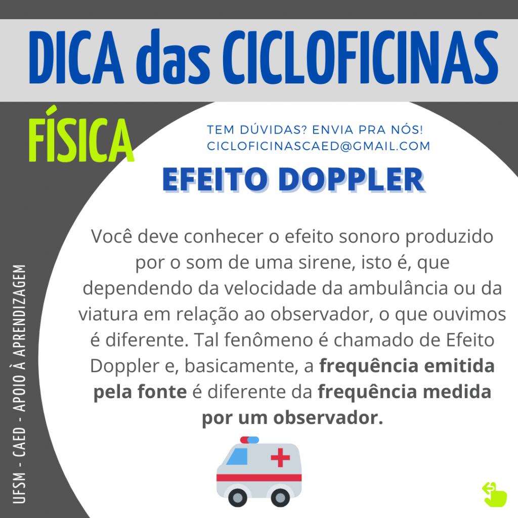 Você tem dúvidas sobre “Efeito Doppler”? Então confira esta dica de Física que a equipe do Projeto Cicloficinas da Subdivisão de Apoio à Aprendizagem da CAEd-PROGRAD preparou.