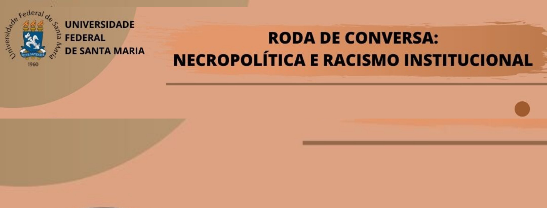 A Universidade Federal de Santa Maria (UFSM) através da Coordenadoria de Ações Educacionais (CAEd) e do Núcleo de Ações Afirmativas Sociais, Étnico-Raciais e Indígenas convida a comunidade acadêmica e a comunidade externa para a Roda de Conversa: Necropolítica e Racismo Institucional que ocorrerá no dia 09/07/2020, às 19h, pelo Google Meet. Acesso em: meet.google.com/cqo-gqby-mgk