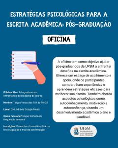→Oficina: Estratégias Psicológicas para a Escrita Acadêmica: Pós-Graduação