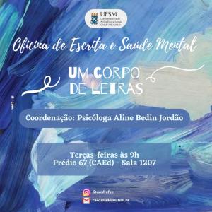 PROPOSTA: Partindo do pressuposto de que a escrita pode operar como um dispositivo terapêutico, esta oficina busca oferecer um espaço de acolhimento, de escuta, de trocas, de reflexões, e de produções singulares de escrita, a partir de temas disparadores que produzam reflexões acerca da saúde mental, mais especificamente a relação do sofrimento psíquico com a dimensão do corpo. Propõe-se a elaboração do mal-estar, a nomeação das angústias, bem como a produção de uma inscrição de si, contribuindo para o desenvolvimento pessoal e acadêmico dos participantes.