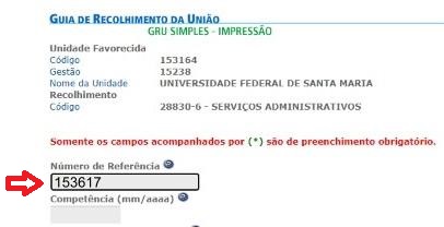 No preenchimento da GRU, é necessário informar no campo “número de referência” o código 153617: