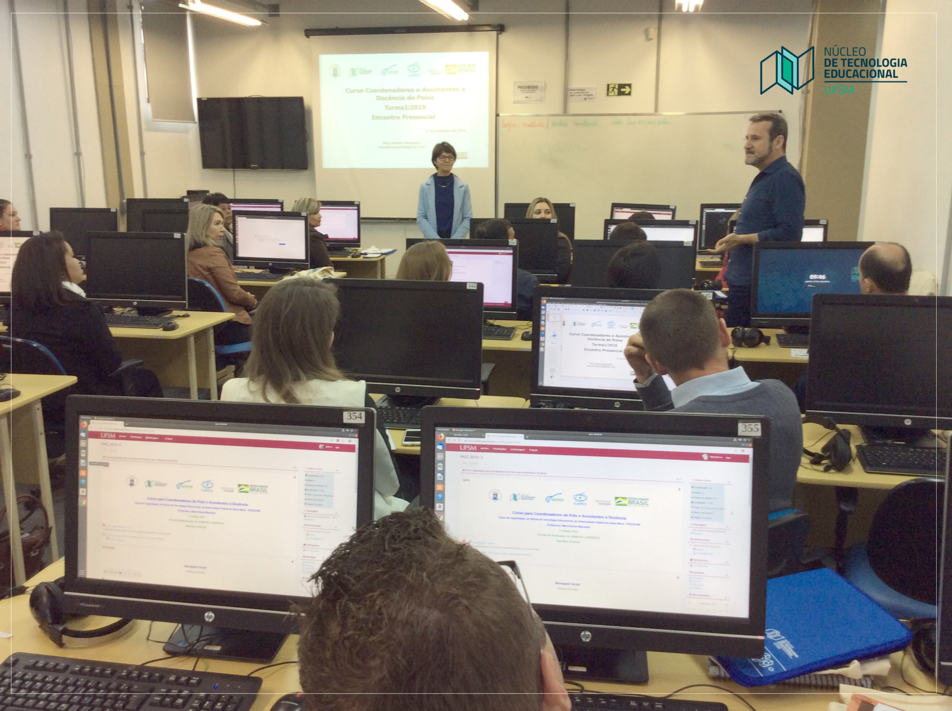 Na quinta-feira (12), as coordenações de Polos UAB e os assistentes à docência das Instituições Públicas Federais em que a UFSM oferta cursos na modalidade EaD se reuniram no NTE UFSM para o encontro presencial do “Curso para Coordenadores de Polo e Assistentes à Docência”.