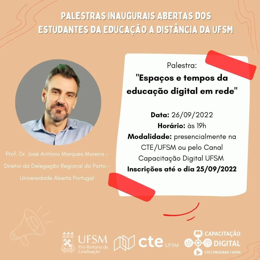 A Coordenadoria de Tecnologia Educacional da Pró-Reitoria de Graduação da UFSM (CTE/PROGRAD/UFSM), juntamente com a Coordenação da Universidade Aberta do Brasil na UFSM, promove Palestras Inaugurais para Estudantes dos Cursos EaD: