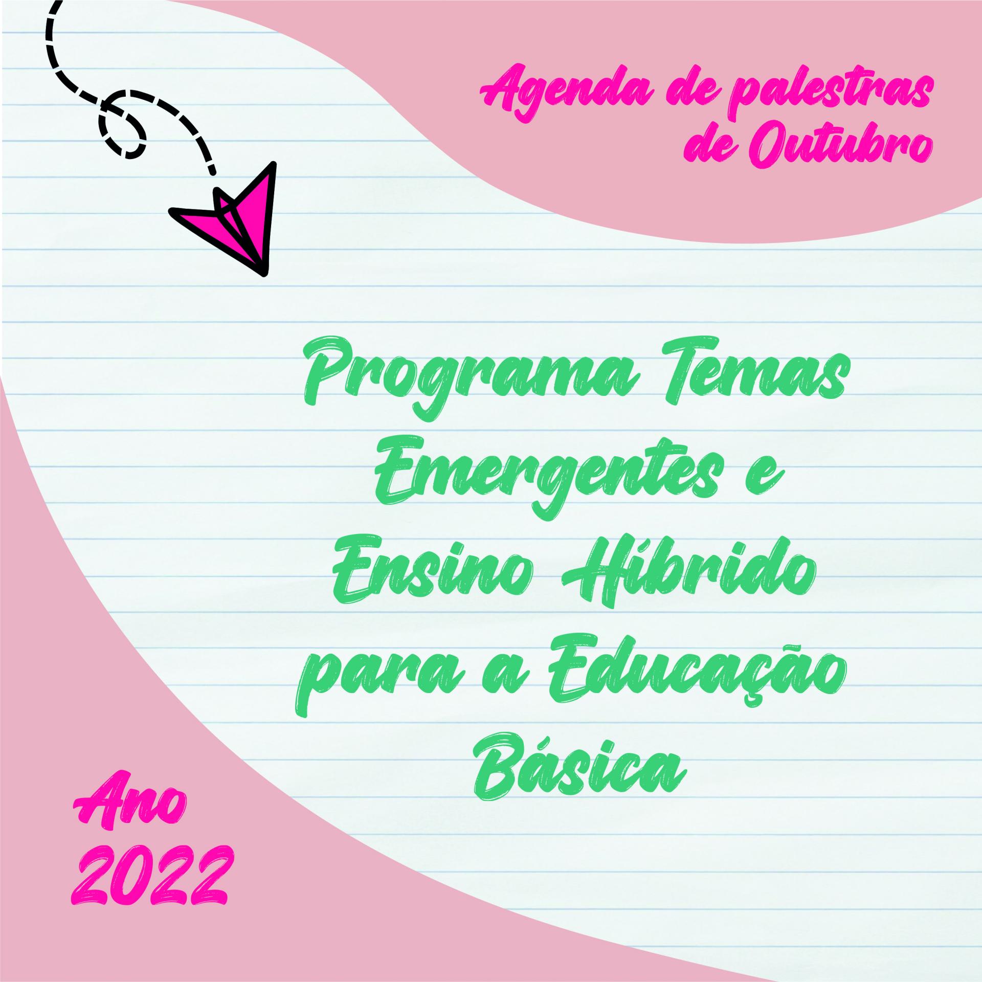 O Programa Emergentes e Ensino Híbrido para Educação Básica – ano 2022 divulga a programação de palestras para o mês de outubro de 2022.