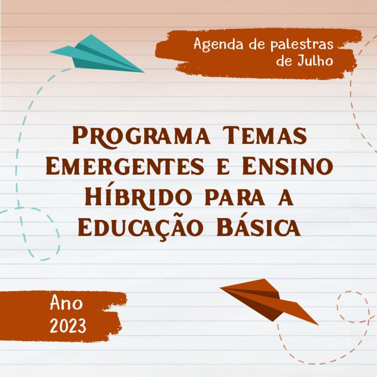 Programa Emergentes e Ensino Híbrido para Educação Básica – ano 2023 divulga a programação de palestras para o mês de Julho de 2023.