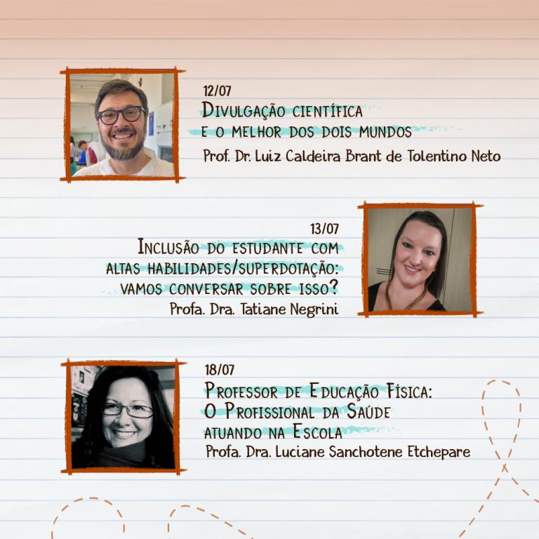 As palestras ocorrerão semanalmente até o mês de novembro, às 19h, com transmissão ao vivo pelo Canal do YouTube Capacitação Digital UFSM