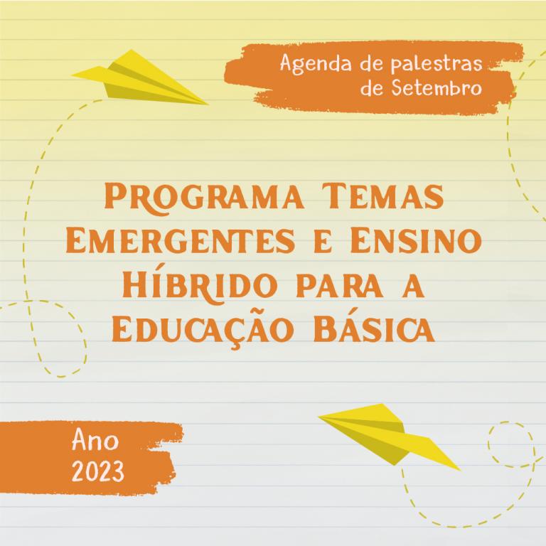 O Programa Emergentes e Ensino Híbrido para Educação Básica – ano 2023 divulga a programação de palestras para o mês de Setembro de 2023.