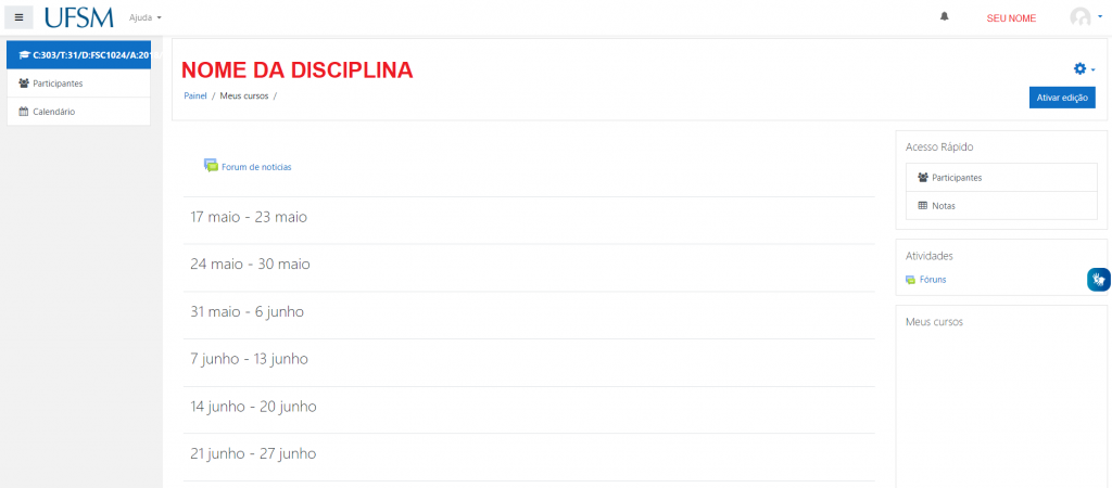 Acesso a(s) disciplina(s) no Moodle