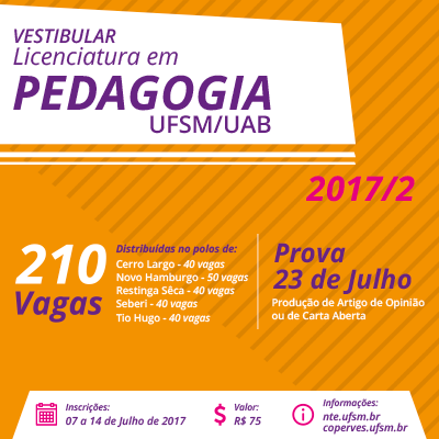Vestibular da UFSM/UAB aconteceu no último domingoNo último domingo (23), a UFSM e a UAB realizaram o concurso Vestibular 2017/II para o curso de Pedagogia. Foram ofertadas 210 vagas [...]