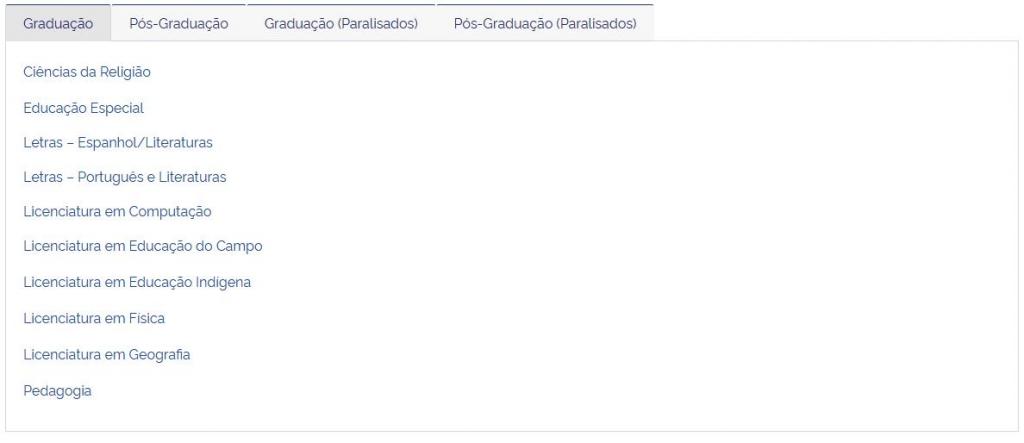 2 – Localize e clique em seu curso de Graduação ou Pós-Graduação.