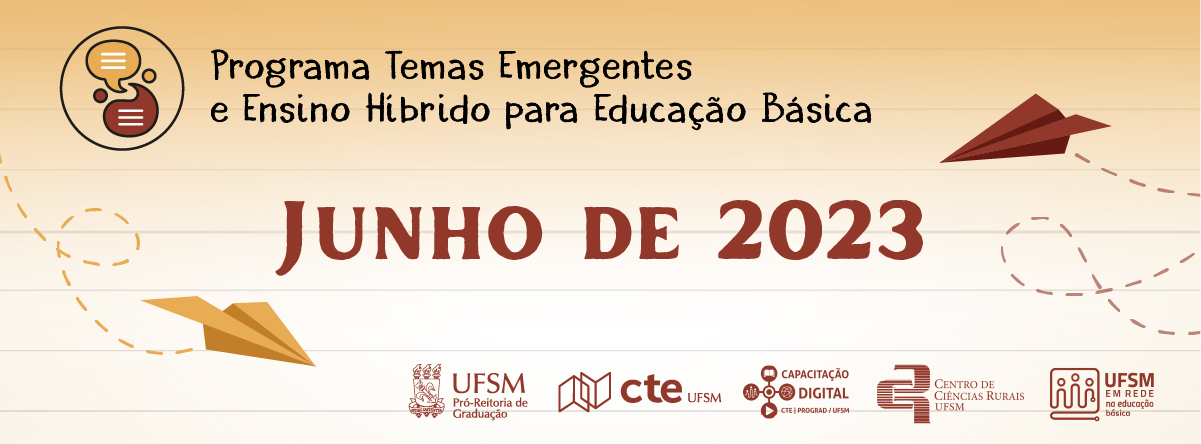 O Programa Temas Emergentes e Ensino Híbrido para Educação Básica – ano 2023, vinculado à Coordenadoria de Tecnologia Educacional da Pró-reitoria de Graduação da Universidade Federal de Santa Maria (CTE/PROGRAD/UFSM), visa formar redes de colaboração com a comunidade educacional, promovendo estratégias para aproximar a universidade e a escola, ofertando formação continuada por meio de palestras gratuitas e, consequentemente, contribuindo para uma educação democrática, inclusiva e de qualidade.