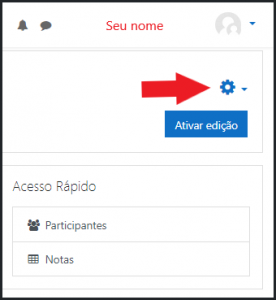 No bloco localizado no topo da disciplina está localizada a direta a engrenagem de configurações.